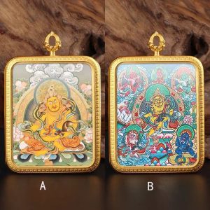 Tibetan double-sided gold-painted Bodhisattva thangka pendant green Tara Manjushri Puxian Bodhisattva